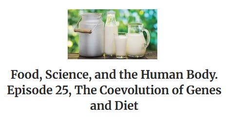“Food, Science, and the Human Body. Episode 25, The Coevolution of Genes and Diet.”